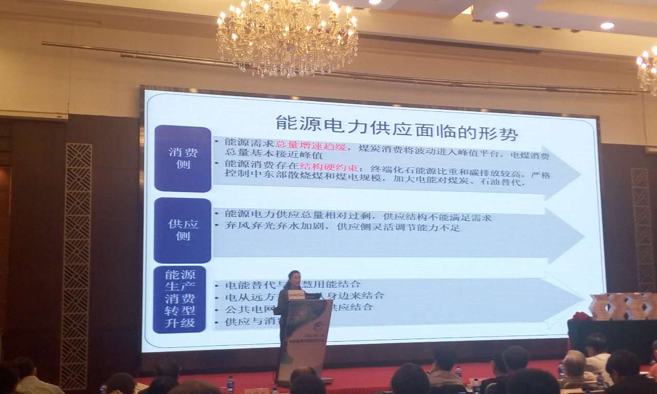 中國電力企業(yè)聯(lián)合會發(fā)展規(guī)劃研究部主任薛靜做主題演講,題目是:能源消費變革促進能源供應(yīng)側(cè)改革。