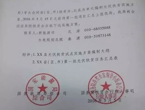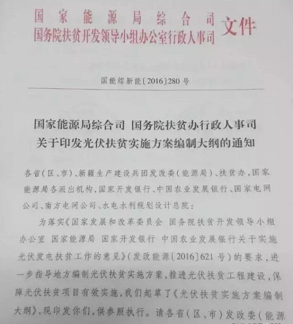繼國家能源局4月底組織部分省區(qū)、電網(wǎng)公司、銀行和企業(yè)召開光伏扶貧推進會后,光伏扶貧試點實施方案編制大綱正式由國家能源局和國務(wù)院扶貧辦聯(lián)合印發(fā)。本批次項目申報材料的提交時間為5月15日。