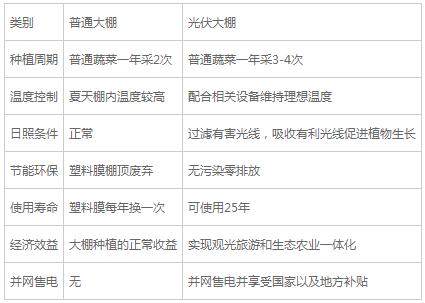 圖表1:光伏農業大棚與普通大棚對比