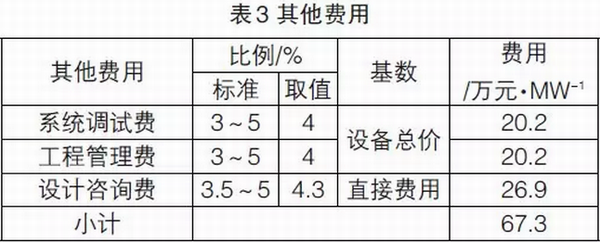 另外考慮降噪和接入費用100萬元/MW(屬于其他費用),則發(fā)電工程單位裝機其他費用為167.3萬元/MW。