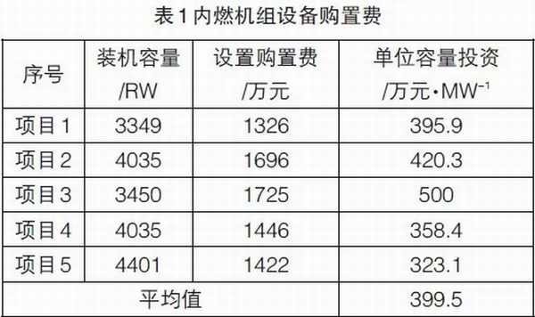 (1)發(fā)電機組投資