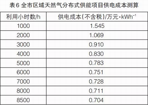 年利用小時數(shù)分別選取2000、3000、4000、5000、6000小時進行測算,供電成本測算結果如表6所示。