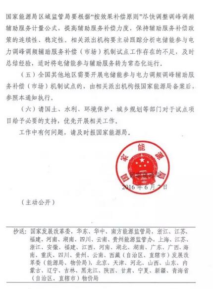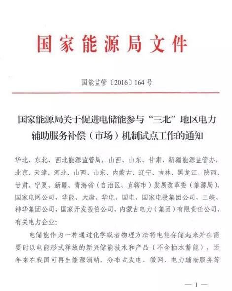 國家能源局于6月7日發布《關于促進電儲能參與“三北”地區電力輔助服務補償(市場)機制試點工作的通知》(國能監管[2016]164號),確定電儲能參與輔助服務!