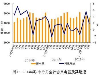 1-4月份,全國電力供需總體寬松。全社會用電量增速同比提高,二產用電增速連續兩個月正增長;工業用電量與上年同期基本持平,制造業用電降幅收窄;建材、鋼鐵和有色金屬冶煉行業用電量同比下降,化工行業用電保持正增長;發電裝機規模保持較快增長,發電量增速持續低迷;火電利用小時持續下降,為2005年以來同期最低水平;全國跨區、跨省送出電量同比增長;基建新增裝機規模高于同期,火電新增裝機規模同比增加。