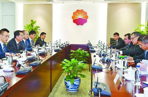 7月26日,中國(guó)石油集團(tuán)副總經(jīng)理、中國(guó)石油股份公司總裁汪東進(jìn)會(huì)見來訪的土庫(kù)曼斯坦天然氣康采恩總裁別格里耶夫一行。雙方就加強(qiáng)中土天然氣貿(mào)易、上游天然氣開發(fā)等領(lǐng)域的合作深入交換了意見。 (記者 常正樂 攝)