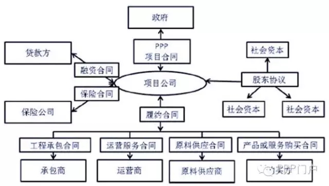 各參與主體之間通過簽署合同建立合作關(guān)系,PPP項目基本合同體系大致如下: