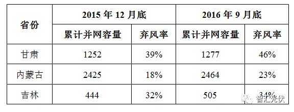 這兩個文件還是為了解決限電和消納!根據公開數據,這三地2015、2016年的風電限電比例如下表(光伏尚未發(fā)布)。