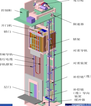 適合幾十米到幾百米摩天大樓樓層高度或長度,也適合礦井直洞上下運輸貨物,可以說在行程方面無任何限制,只要你需要。立著就像下圖的電梯一樣。用電不多,功效很大。它是由電動機、制動器、聯軸器、拉引輪、導向輪及附屬設備組成。如圖所示。