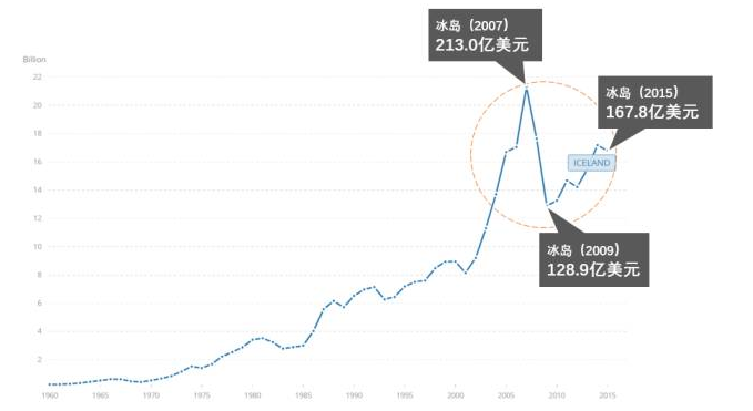 圖:冰島國民生產總值GDP(1960-2015)