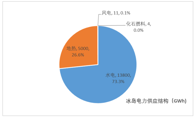 人均年用電量全球最高,約合5萬千瓦時,是中國的15倍左右。目前冰島的電源結構中,地熱接近30%,73.3%來自水電,而風電僅為0.1%,化石燃料幾乎為0。