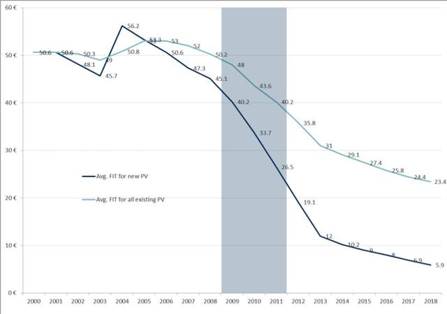 后續(xù)的發(fā)展正如他所預(yù)期,2012年和2014年,德國兩次調(diào)整《可再生能源法》,完善基于新增容量的固定上網(wǎng)電價(jià)調(diào)減機(jī)制,并首次提出針對光伏電站的招標(biāo)制度試點(diǎn)。在兩次調(diào)整之后,SolarWorld已經(jīng)明顯吃不消,不僅擴(kuò)張戰(zhàn)略暫停,既有的業(yè)績發(fā)展也成了問題。