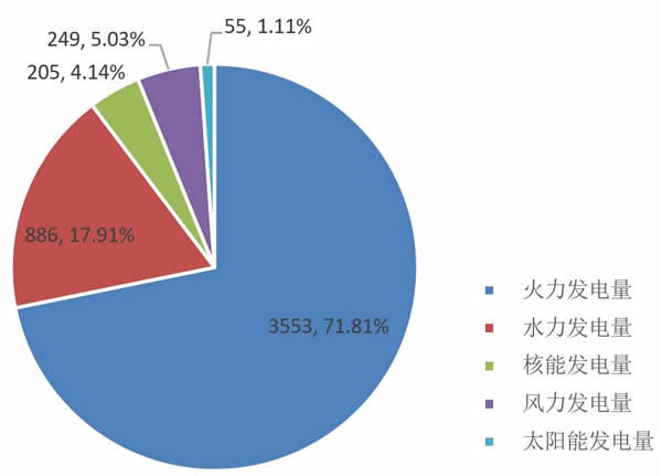 火力發電量占當月發電量比重達71.81%,其次為水電和風電,分別占比17.91%和5.03%。