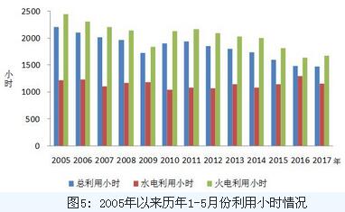 1-5月份,全國發電設備累計平均利用小時1479小時,同比降低5小時。