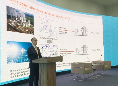 作為大會主要發(fā)言嘉賓,顧博士在其題為“Advanced power electronics technologies for future energy networks”的主題演講中,重點描繪了未來以高滲透率可再生能源為特征的新型能源網(wǎng)絡(luò),分析了由此帶來的機會和挑戰(zhàn),并介紹了一系列以光伏逆變器為核心的先進電力電子技術(shù),包括基于SiC和多電平的高效高功率密度的逆變技術(shù),對電網(wǎng)起支撐作用的VSG技術(shù)和SVG技術(shù),對光伏組件起保護和修復(fù)作用的反PID技術(shù)。他認為,未來能源互聯(lián)網(wǎng)是大勢所趨,能源互聯(lián)將以勢不可擋的力量與不同行業(yè)產(chǎn)生新的融合,應(yīng)用場景愈發(fā)廣泛。陽光電源將憑借自身在可再生能源領(lǐng)域的成功經(jīng)驗和先進技術(shù),與傳統(tǒng)行業(yè)攜手,共創(chuàng)美好世界。