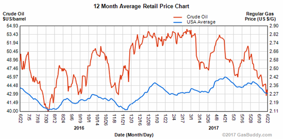 國內價格持續下調,另一個大背景是國際石油價格的暴跌。6月21日,8月份交貨的紐約期貨價格已經跌至42.53美元一桶。紐約原油期貨價格已跌至每桶44美元附近,與5月23日價格相比下跌了16%;布倫特原油期貨價格跌至每桶46美元附近,與5月23日價格相比下跌了15%。
