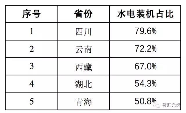 截至2016年底,全國(guó)各省水電累計(jì)裝機(jī)占比超過(guò)50%以上的省份如下表。