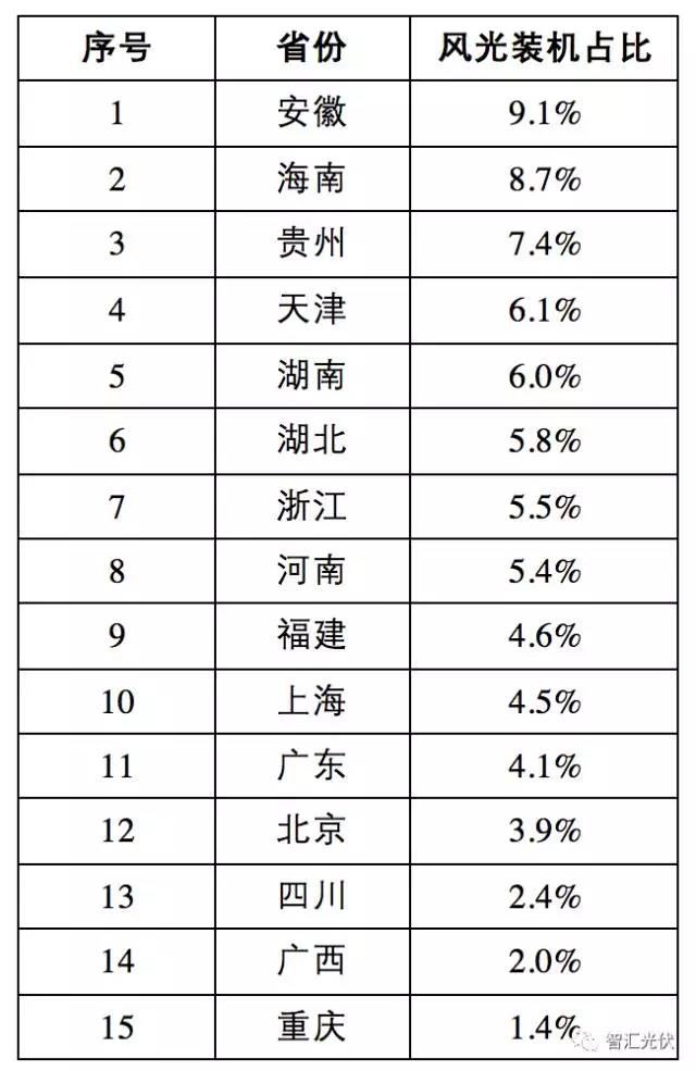 表1:風(fēng)光裝機(jī)占比超過(guò)20%的省份