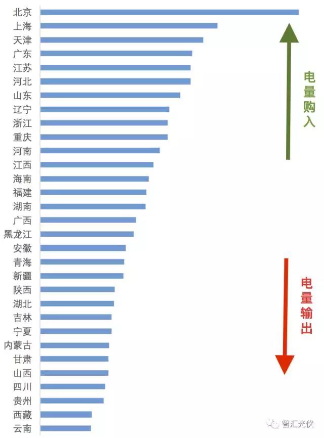 采用各省的總用電量與總裝機(jī)量的比值。比值越大,說(shuō)明該省的用電量高,裝機(jī)不夠省份,應(yīng)該是電力輸入的省份;比值越小,說(shuō)明該省的用電量小,但裝機(jī)量太大,應(yīng)該是電力輸出的省份。