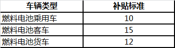 (一)燃料電池汽車推廣應用補貼標準如下: