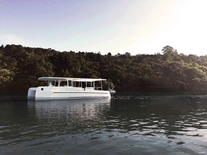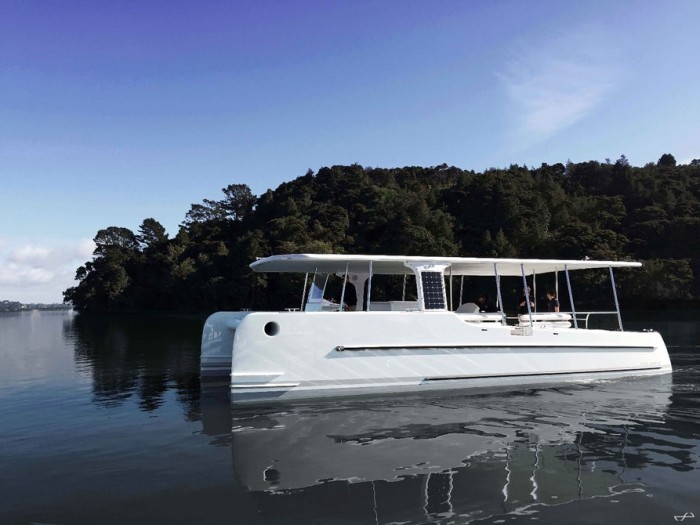 據(jù)外媒報道,荷蘭Soel Yachts公司本周在新西蘭推出了一款稱為SoelCat 12的電動雙體船,展示了一種更清潔的水上交通工具。零排放的SoelCat 12能夠運(yùn)載16名乘客,不需要燃料。而是依靠裝在船頂?shù)?.6KWp太陽能電池陣列提供動力。