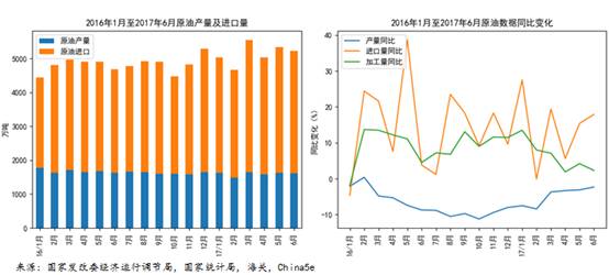成品油方面,成品油消費(fèi)量平穩(wěn)增長(zhǎng),預(yù)計(jì)2017年全年成品油消費(fèi)量同比增長(zhǎng)≤5%(2016年為5.0%);為消納過(guò)剩產(chǎn)能,成品油出口增速曾遠(yuǎn)高于產(chǎn)量、消費(fèi)量增速,但受出口配額收緊等因素影響,二季度大幅回落;企業(yè)加工貿(mào)易出口方式受限,可以看出政府不鼓勵(lì)大量進(jìn)口原油用于加工出口。