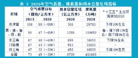注:表中“煤控”一欄中煤炭消費量是根據地方統計數據(2012)得出的,等效于全國煤炭消費量35億噸。“十三五”生態環境規劃2020的煤耗下降率是基于2015年對比得出的。