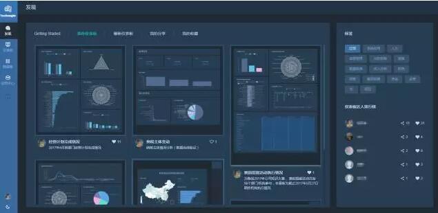 系統提供自助式數據準備支持,快速連接信息資源。數據資產可以像“財務資產卡片”一樣去管理,但數據資產形成后最大的意義還在于對數據資產的應用。權限允許的情況下,數據的使用者可以瀏覽企業數據資源,或者像百度、谷歌那樣搜索你所能看到的數據,并快速添加數據到自己的數據工作臺,開始數據探索應用之旅。除了“上架”的數據資源,數據使用者還可以通過文件上傳、多種數據庫連接器的形式,連接更多的數據,更有意思的是個人上架的企業離線以外數據或者企業外部數據,還可以通過數據使用者的共享上架功能,在團隊、不同部門乃至整個企業組織間進行數據共享。