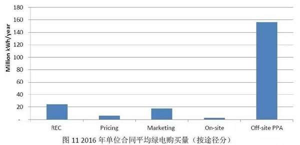 根據EPA的最新數據,截止至2016年,非綁定RECs仍是自愿綠電市場上用戶獲得REC的最主要途徑,但PPA的分量正逐年遞增,且平均每份PPA合同所簽訂的購買電量遠遠高于其他幾種購買途徑。
