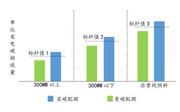 由上圖可知,300兆瓦以上機(jī)組的單位發(fā)電碳排放量要低于300兆瓦以下機(jī)組的碳排放量,但是由于多個(gè)標(biāo)桿值,就會(huì)導(dǎo)致部分300兆瓦以上機(jī)組去購買300兆瓦以下機(jī)組的碳配額,導(dǎo)致資源的錯(cuò)配。