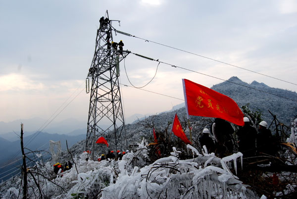 今年2月5日以來,河南、湖北、湖南、江西部分地區出現中到大雪,局部暴雪,四川、重慶部分地區也出現小雪或雨夾雪。受此影響,部分500千伏主干輸電線路出現覆冰。南方電網公司早在9日就已經啟動了低溫冰凍災害藍色預警。公司所屬的云南電網隨即發布黃色預警,廣西電網也發布了藍色預警。而冰情最嚴重的貴州電網公司發布了紅色預警。
