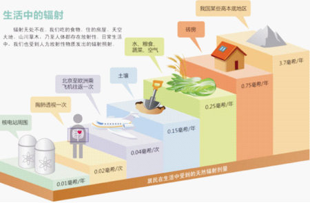 人類一直受著天然電離輻射照射,包括宇宙射線、地球放射性核素產生的輻射等。人類所受到的集體輻射劑量主要來自天然本底輻射和醫療。