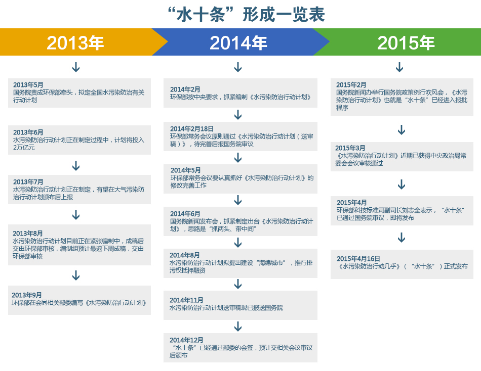 成效三:理順體制機制。"水十條"的實施,將進一步創新工作思路,推進水環境"質量目標管理"戰略轉型,推動形成"政府統領、企業施治、市場驅動、公眾參與"的水污染防治新機制;進一步完善水污染防治稅收、價格等經濟政策,第三方治理、生態補償等市場機制在水污染防治領域發揮更大的作用;進一步完善信息公開機制,有效落實地方政府及企事業單位治污責任,建立健全水污染防治長效機制。