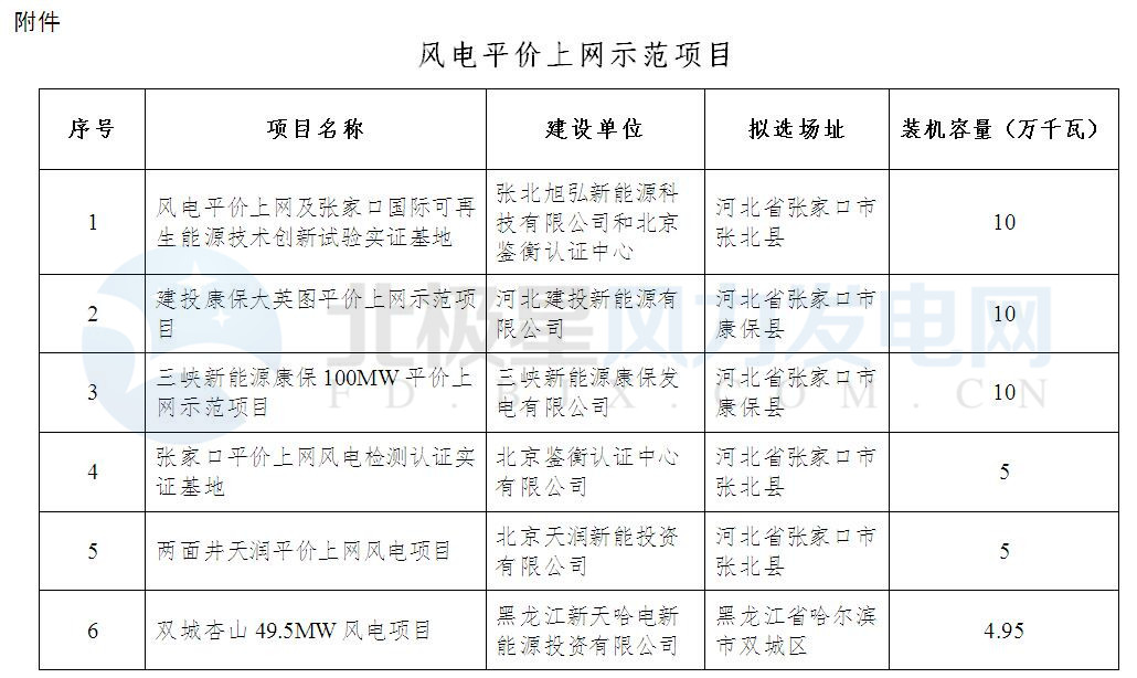 附件:風(fēng)電平價上網(wǎng)示范項目