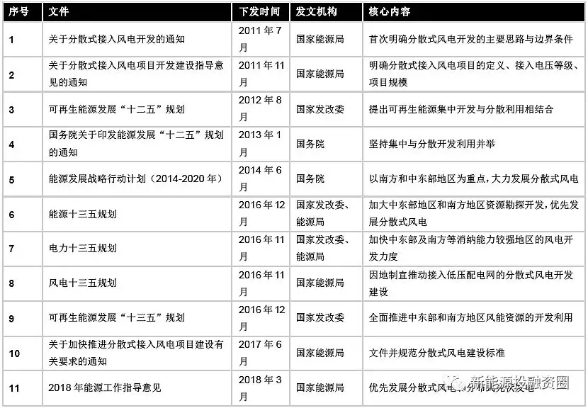 1、2011年7月國家能源局下發 《關于分散式接入風電開發的通知》 (國能新能 〔2011〕 226 號) ,首次明確我國分散式風電開發的主要思路與邊界條件,就積極穩妥、因地制宜地做好分散式接入風電開發工作做出了相應安排和部署。