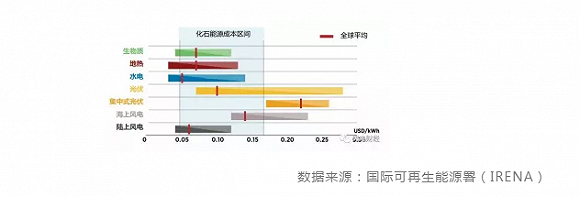 國際可再生能源署(IRENA)預計,隨著技術進步,2019年全球成本最低的風電和光伏項目的度電成本將達到甚至低于3美分/千瓦時,成為最經濟的綠色電力。
