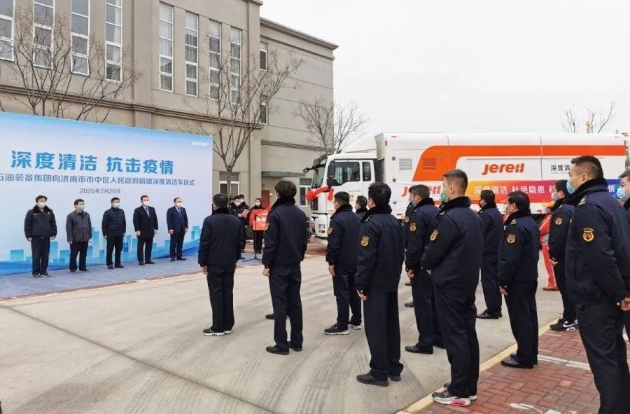 2月26日上午,杰瑞集團向濟南市市中區人民政府捐贈一臺深度清潔車,濟南市市中區副區長殷繼明先生、杰瑞集團副總裁謝猛先生出席此次捐贈儀式,攜手一道堅決打贏這場新型冠狀病毒防控阻擊戰“疫”。