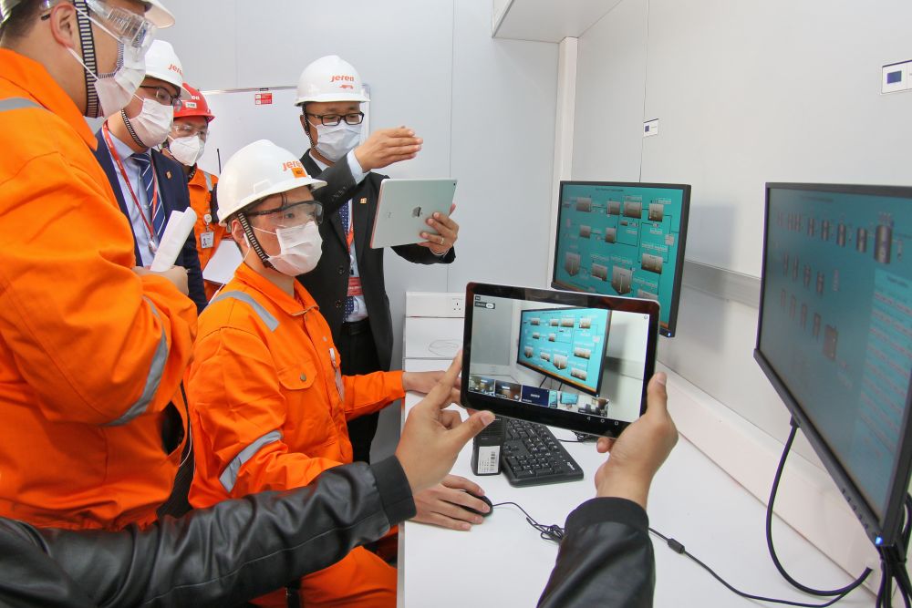 ↑技術(shù)人員使用平板電腦向沙特客戶直播設(shè)備細(xì)節(jié)和功能測(cè)試過(guò)程。