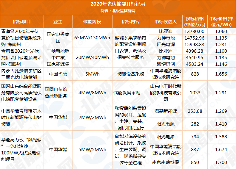 11月16日,青海光伏競價項目配套儲能項目開標(biāo),最低逼近1元/Wh的儲能單價刷爆朋友圈。