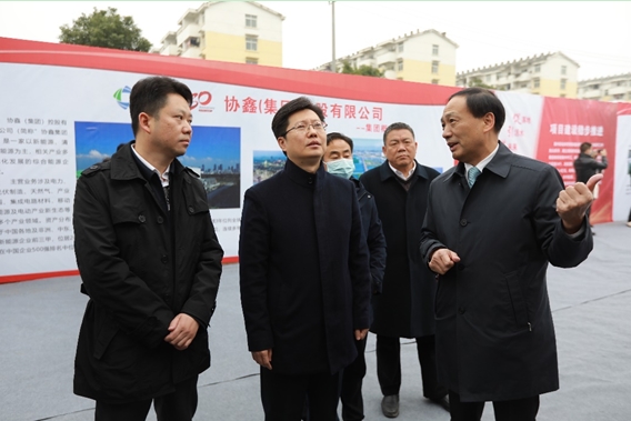 協(xié)鑫能科總經理費智向襄陽市委副書記、市長郄英才作項目介紹