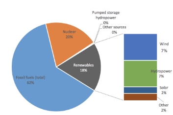 目前美國使用的能源中62%都來自化石能源。數據來源:EIA