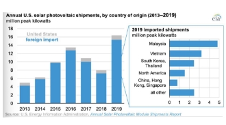 2019美國光伏進口來源,馬來西亞高居第一。來源:EIA