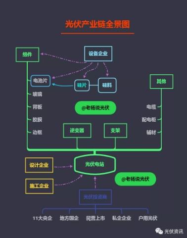 眾所周知,光伏產業鏈有著一條明確而清晰的產業鏈,分別是硅料、硅片、電池片、組件、應用系統五大環節。處于光伏產業鏈上游的為硅片,光伏產業中游主要涉及電池片及組件,下游主要為光伏發電系統。