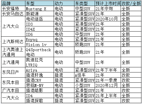 各合資品牌年底至2021年也將上市多款電動車。