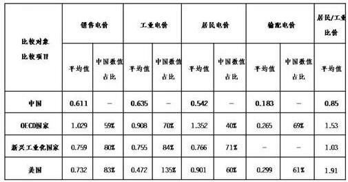 從以上幾組數(shù)據(jù)對(duì)比可以看出,與OECD國(guó)家和新興工業(yè)化國(guó)家相比,我國(guó)電價(jià)明顯處于較低水平;與美國(guó)相比,我國(guó)電價(jià)總體水平也低于美國(guó)。