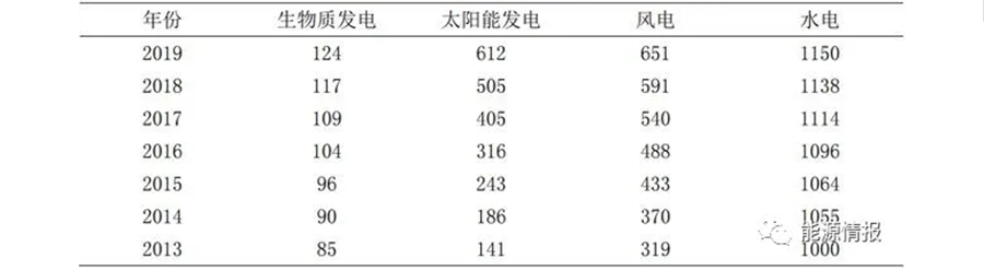 表 2 2013—2019 年全球可再生能源累計裝機總量 GW