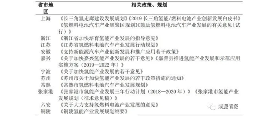 持續加快推進氫能發展是推動長三角地區能源供給側結構性改革的重大戰略舉措,也是落實推進長三角區域一體化戰略、打造世界級先進制造集群的重要突破口。長三角地區對推動氫能發展已達成基本共識,紛紛出臺了相關政策規劃,如表 4 所示。