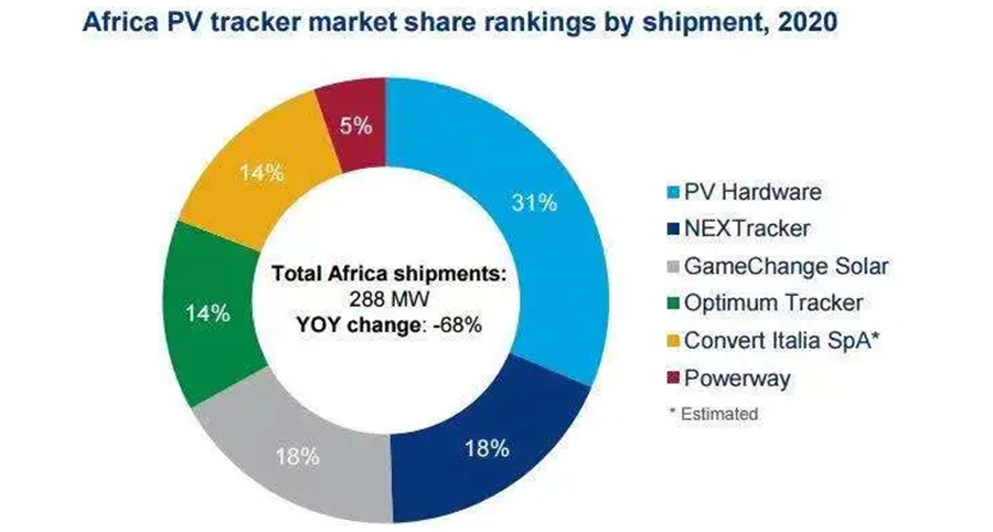 圖片:2020年非洲市場光伏跟蹤支架出貨排名 來源:伍德麥肯茲
