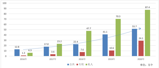 本月,中國電動汽車充電基礎設施促進聯盟發布的《2020-2021年度中國充電基礎設施發展報告》(以下簡稱《發展報告》)顯示,2020年,我國充電基礎設施建設規模持續高速增長,截至2020年底,公共充電樁保有量數量79.8萬個,私人充電樁數量87.4萬個,建設規模持續保持世界首位。