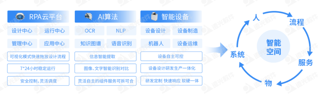 遠光軟件自2015年開啟了人工智能領域的技術研究與應用,與澳門科技大學共同成立了“人工智能聯合實驗室”,與中德人工智能研究院達成戰略合作,以產學研深度融合加速對AI技術的探索及實踐化應用,并通過聚焦客戶實際業務場景,推出了RPA云平臺、智能設備管理平臺和AI計算平臺等三大平臺及百余款軟硬件機器人,致力將用戶及業務場景中的人、流程、服務與物在內的多個要素匯聚到智能空間,構建人機共進的智能生態系統。