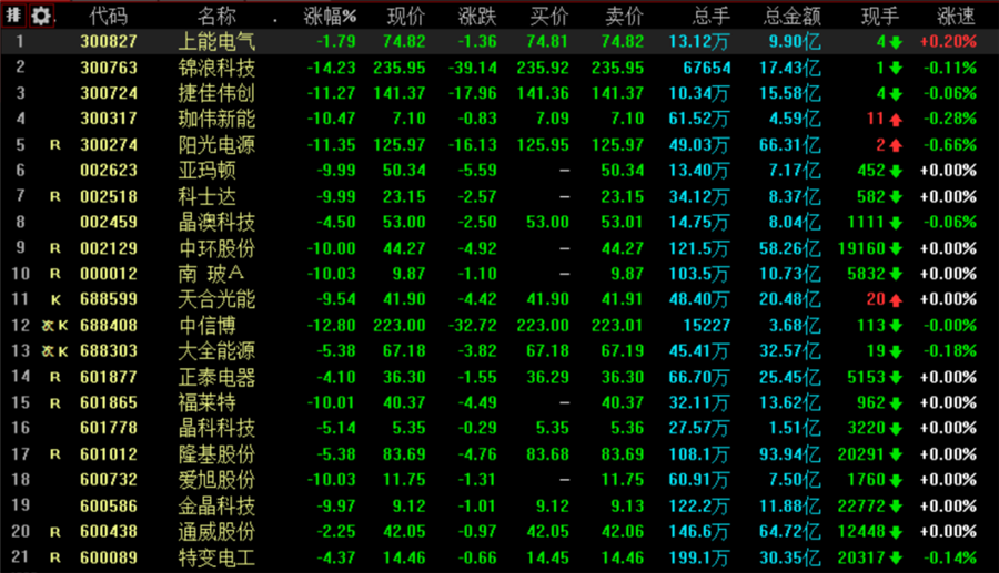 具體來看,風電各上市企業分別有0.18%-12.74%不同程度漲幅(個別出現下跌企業除外);光伏分別有1.79%-12.80%不同程度跌幅。(時間倉促、不完全統計)